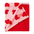 Dwustronna konstrukcja – jedna strona pokryta jest wzorem serduszek, druga to jednolity, intensywnie czerwony kolor – dzięki temu możesz dopasować wygląd kocyka do swoich upodobań.