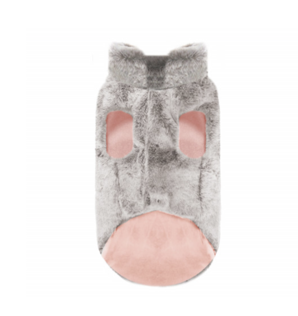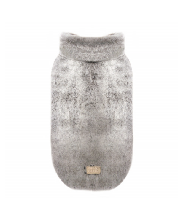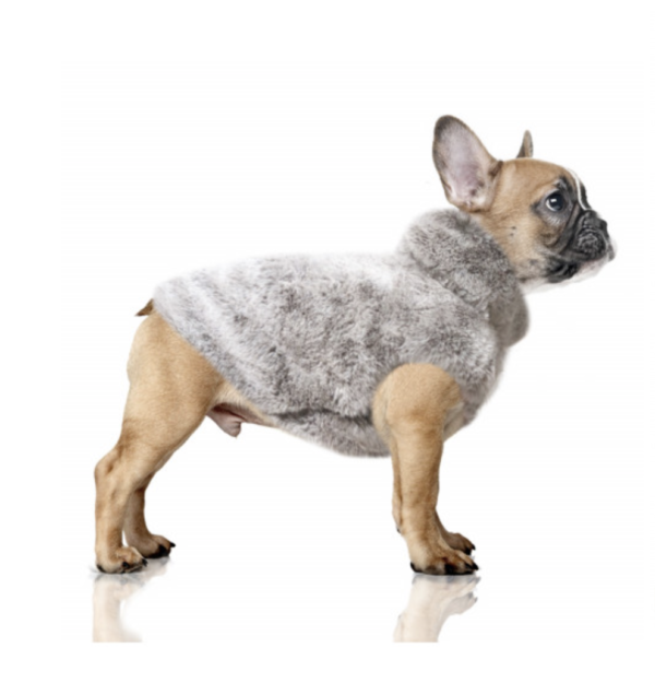 Specjalna dla psów małych i średnich ras + linia bulldog bluza z miękkiego futra Fantasy w kolorze naturalnym/szarym.