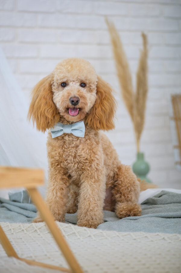 Stylowa mucha dla psa La perla Niebieska – elegancki dodatek, który podkreśli urok Twojego pupila na każdą okazję.