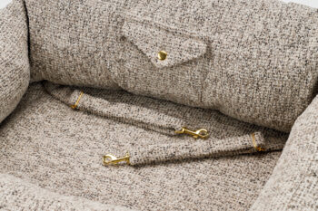 W kolekcji Miami Coco nie brakuje luksusu i stylu. Każdy element, począwszy od legowiska, poprzez siedzisko do auta, aż po torbę dla psa z etui na kupoworki, został zaprojektowany z myślą o zapewnieniu wyjątkowego komfortu i nawiązaniu do dziedzictwa słynnej Coco Chanel, której tweedowe materiały kochamy.