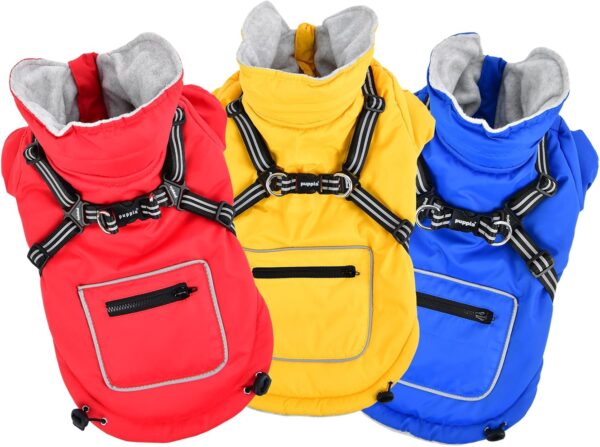 Zimowa kamizelka polarowa Mallory z uprzężą i kurtką to idealne rozwiązanie dla małych i średnich psów, zapewniające ciepło, wygodę i styl podczas chłodnych spacerów.
