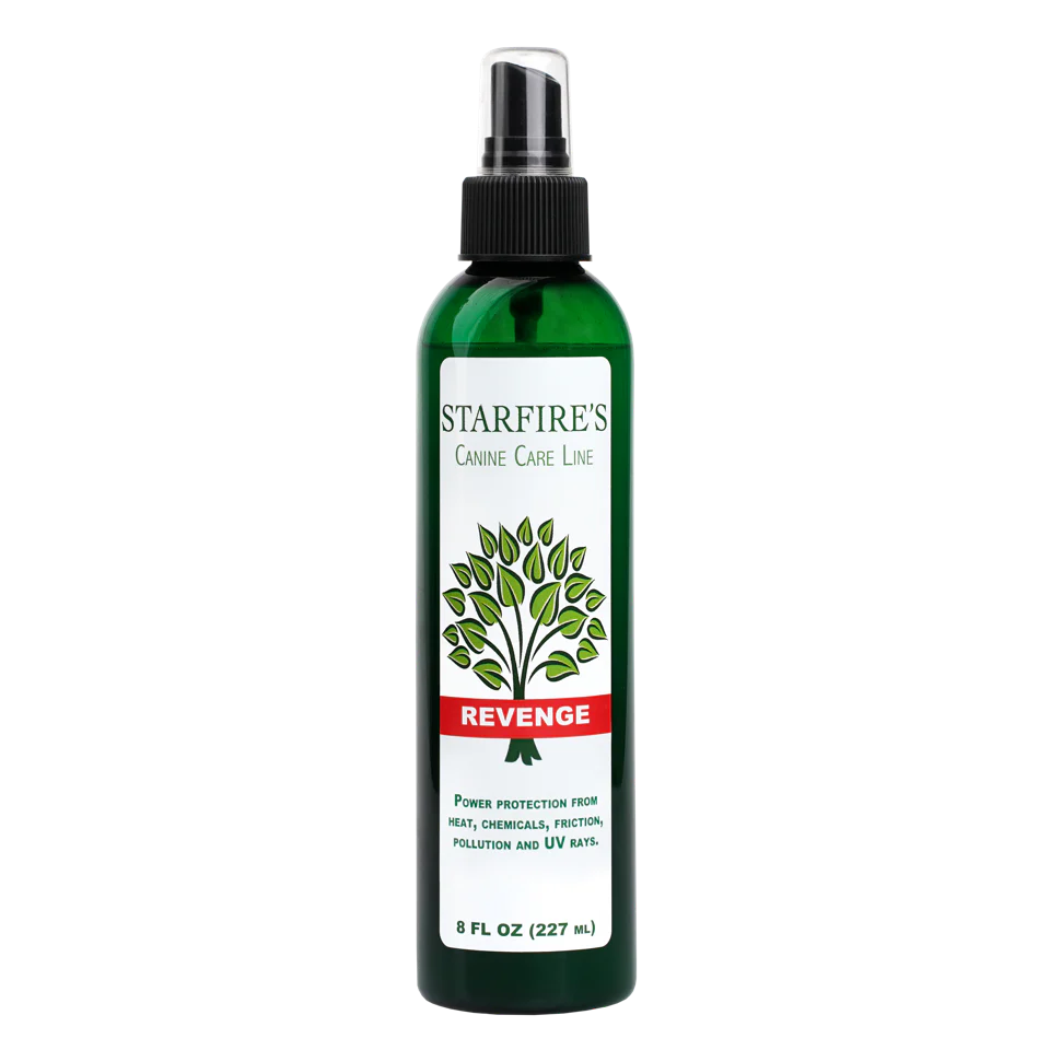 Starfire’s Canine Care Line – Revenge to profesjonalny spray ochronny typu leave-in, stworzony do kompleksowej ochrony sierści psów rasowych. Doskonale sprawdza się u pomeranianów, których delikatna sierść narażona jest na uszkodzenia mechaniczne, działanie wysokiej temperatury, promieni UV oraz zanieczyszczenia środowiskowe.
