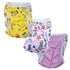 Pieluszki są wielokrotnego użytku, trzywarstwowe i doskonale wchłaniające wilgoć, dzięki czemu nie wymagają dodatkowego wkładu.