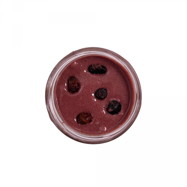 Skład: masło orzechowe, oliwa z oliwek z pierwszego tłoczenia, organiczne buraki, suszone jagody.